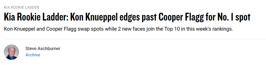 北京时间1月21日,NBA官网公布了最新一期的新秀榜。黄蜂的4号秀克努佩尔超越状元弗拉格,升至榜首。开拓者落选秀乐福排名比上周再升一位,来到第8位。以下是具体排名——