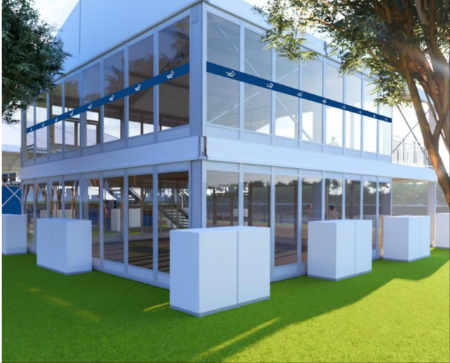 图说:赛事VIP看台效果图从终点塔回看赛道,阿尔巴诺浮标系统一字排开,红白的浮球把航道切得很清楚,发令与起航平台已经校准到位,东岸新搭的摄像平台对着终点线,安排好了冲线的关键画面。据上海市体育训练基地管理中心副主任梁力介绍,赛场的骨架是2000米的主赛道与副赛道;阿尔巴诺浮标系统已按国际赛联要求重新拉设,移动发令塔、终点塔、东岸转播平台等关键设施完成校准。船库按队别归位,二楼设置运动员称重与休息区,上水码头与起点之间的线路已按赛事竞赛手册的要求布置到位,更利于训练和比赛日高效流转。按照赛前安排,场地于9月11日起开放适应性训练,9月17日至20日为官方训练期,届时由赛事组委会统一调度水陆面资源,保障队伍有序上水、准时下水。